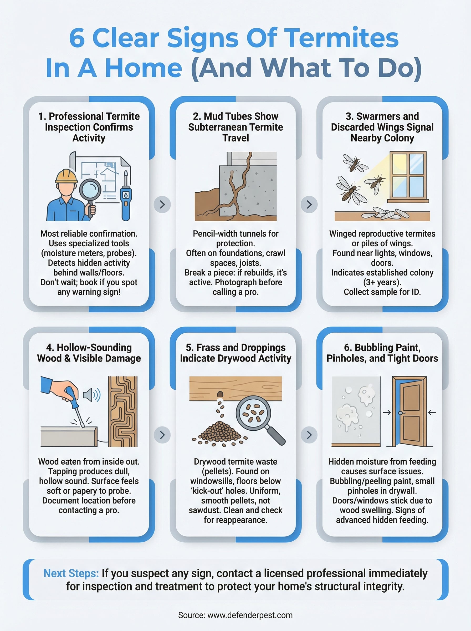 This article breaks down six clear indicators that termites may be active in your home, along with what each sign looks like and what you should do about it. Whether you're a homeowner noticing something suspicious or a buyer preparing for a real estate transaction , these are the red flags that demand your attention. Let's get into the specific signs you need to know .