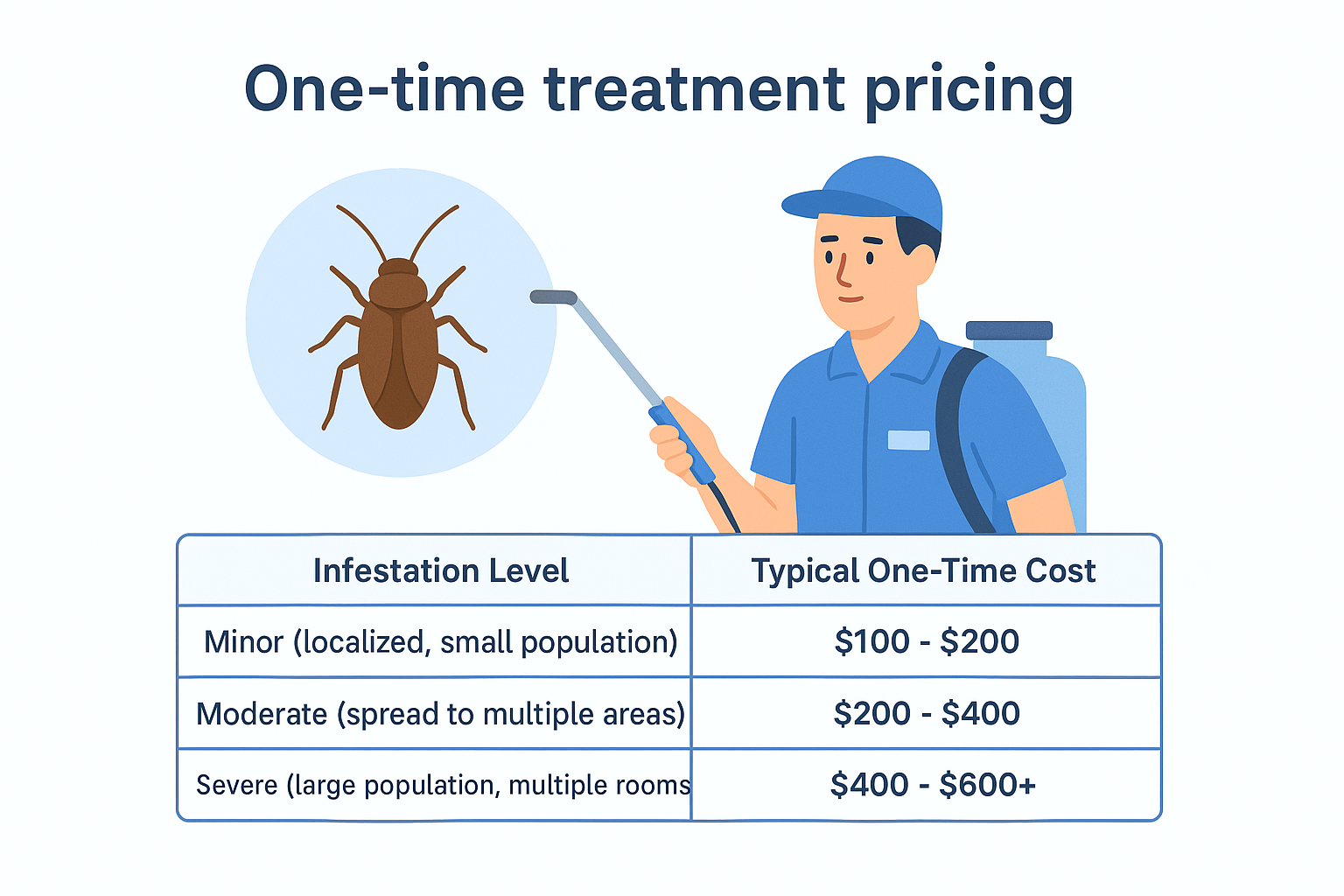 For a single-visit cockroach treatment , most homeowners pay between $100 and $300 for a moderate infestation in a standard-sized home. Larger properties or more severe infestations push that number toward $400 to $600 or more. A small apartment with a minor roach problem caught early sits at the lower end, while a multi-room German cockroach infestation requiring multiple treatment methods and follow-up visits lands at the higher end.