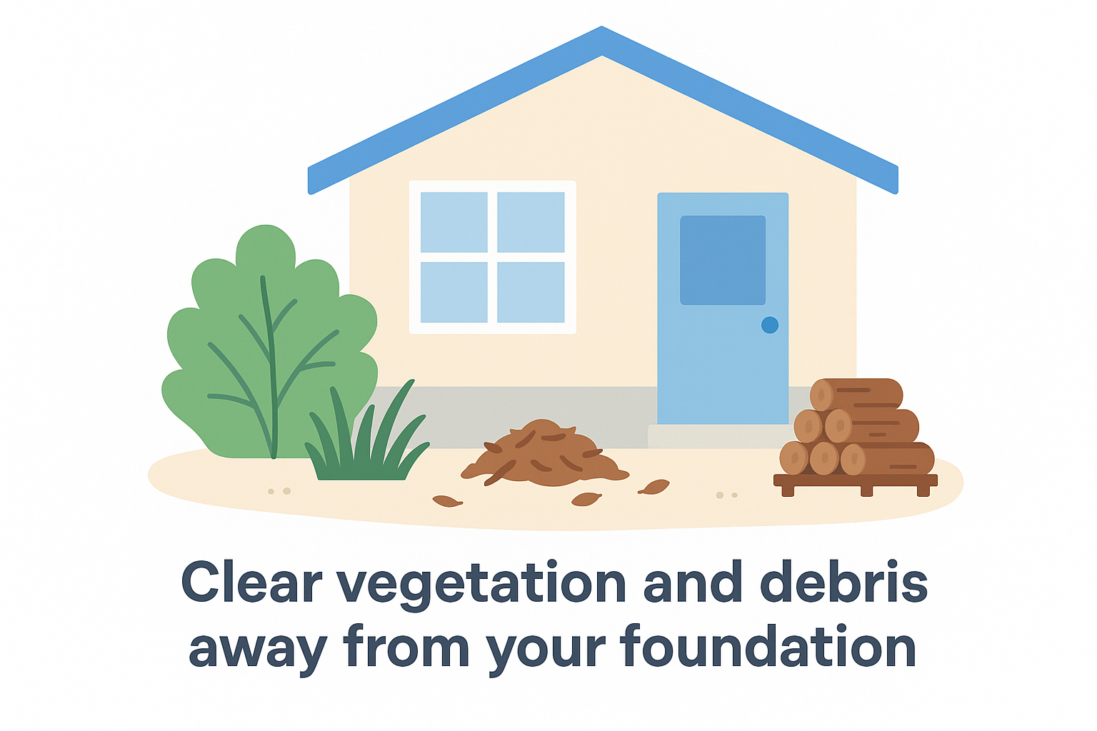 Dense shrubs, tall grass, and piles of leaves or wood placed directly against your foundation give spiders ideal nesting conditions right next to your home. Trim shrubs and plants so they sit at least 12 to 18 inches away from the exterior walls. Move firewood stacks away from the house entirely, keeping them at least three feet from any exterior surface and elevated off the ground.