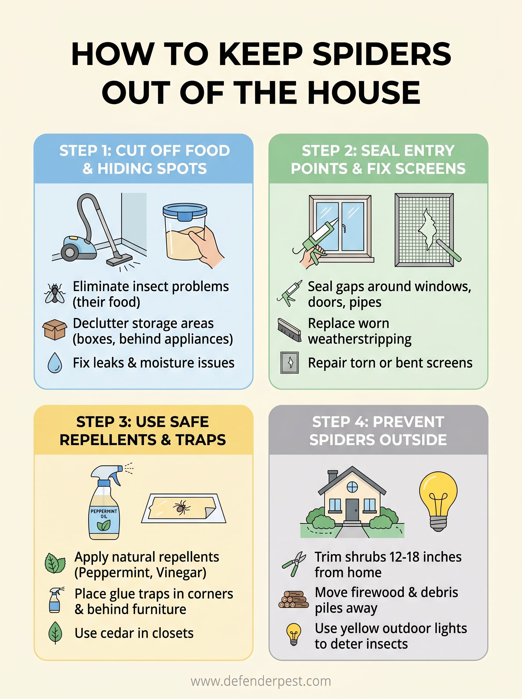 Reducing your home's insect population is often the single fastest way to cut spider activity, because you're removing the reason they came inside in the first place.