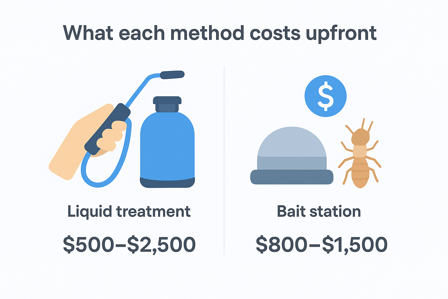 When you compare termite bait stations vs liquid treatment , price is usually the first number people ask about. But cost without context is misleading. What you pay upfront and what you spend over five years are two very different figures, and both matter when you're making a long-term decision about protecting your home.