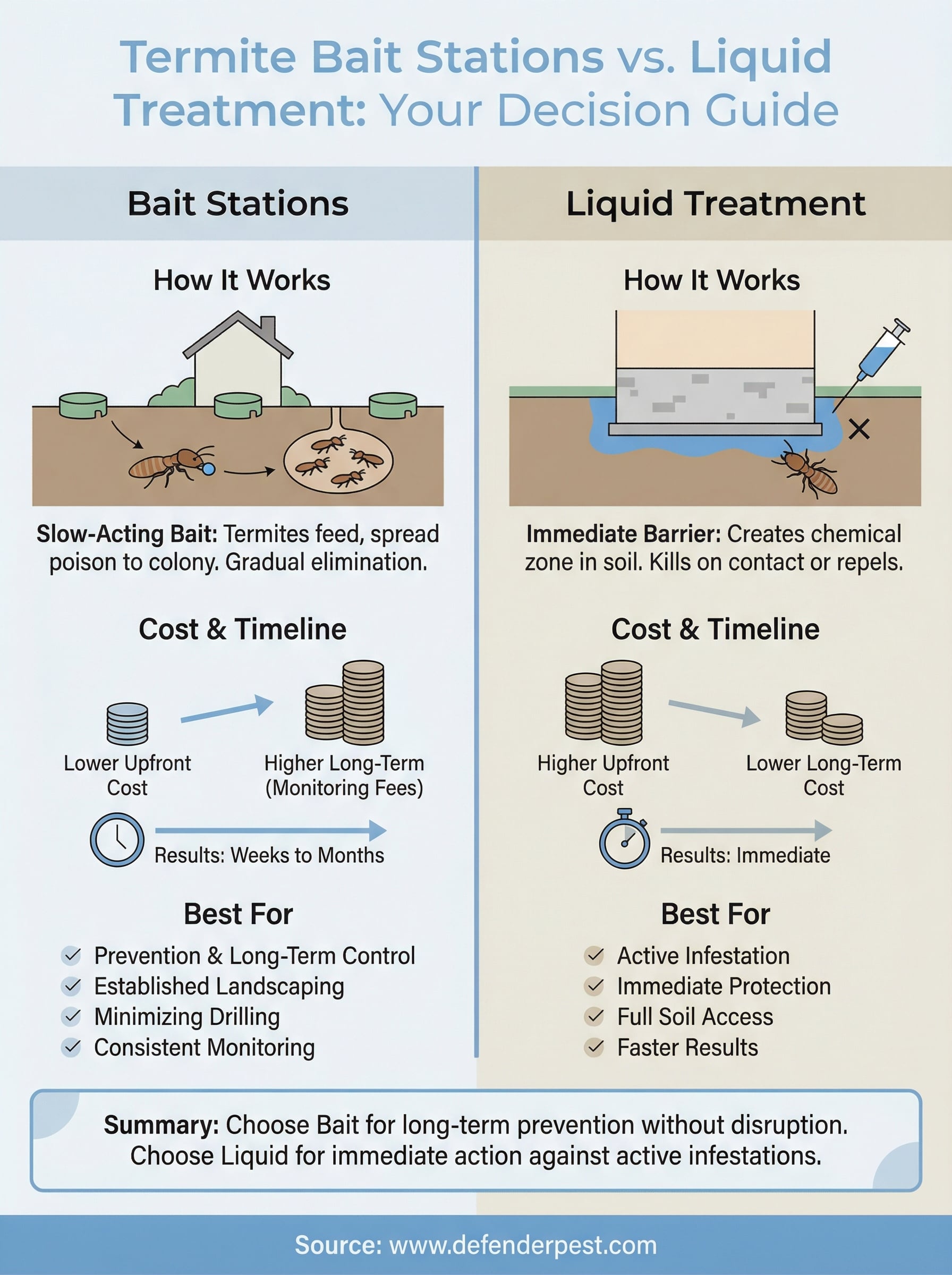 Termite Bait Stations vs Liquid Treatment: Costs & Results