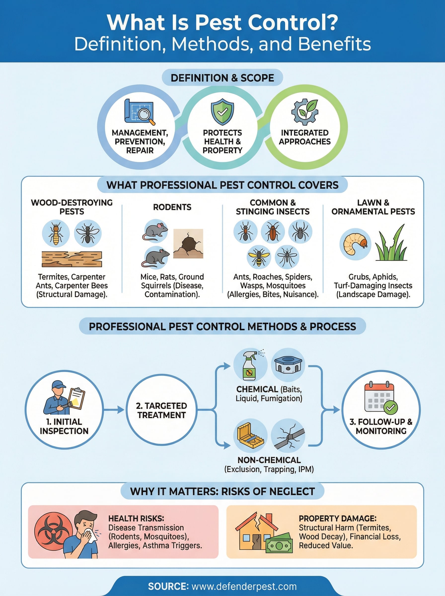 If you've ever spotted ants marching across your kitchen counter or heard scratching inside your walls at night, you've probably asked yourself: what is pest control , and do I actually need it? The short answer is yes, and understanding what it involves can save you a lot of money, stress, and structural damage down the road. Pest control is the practice of managing, preventing, or eliminating unwanted organisms that threaten your health, property, or quality of life .